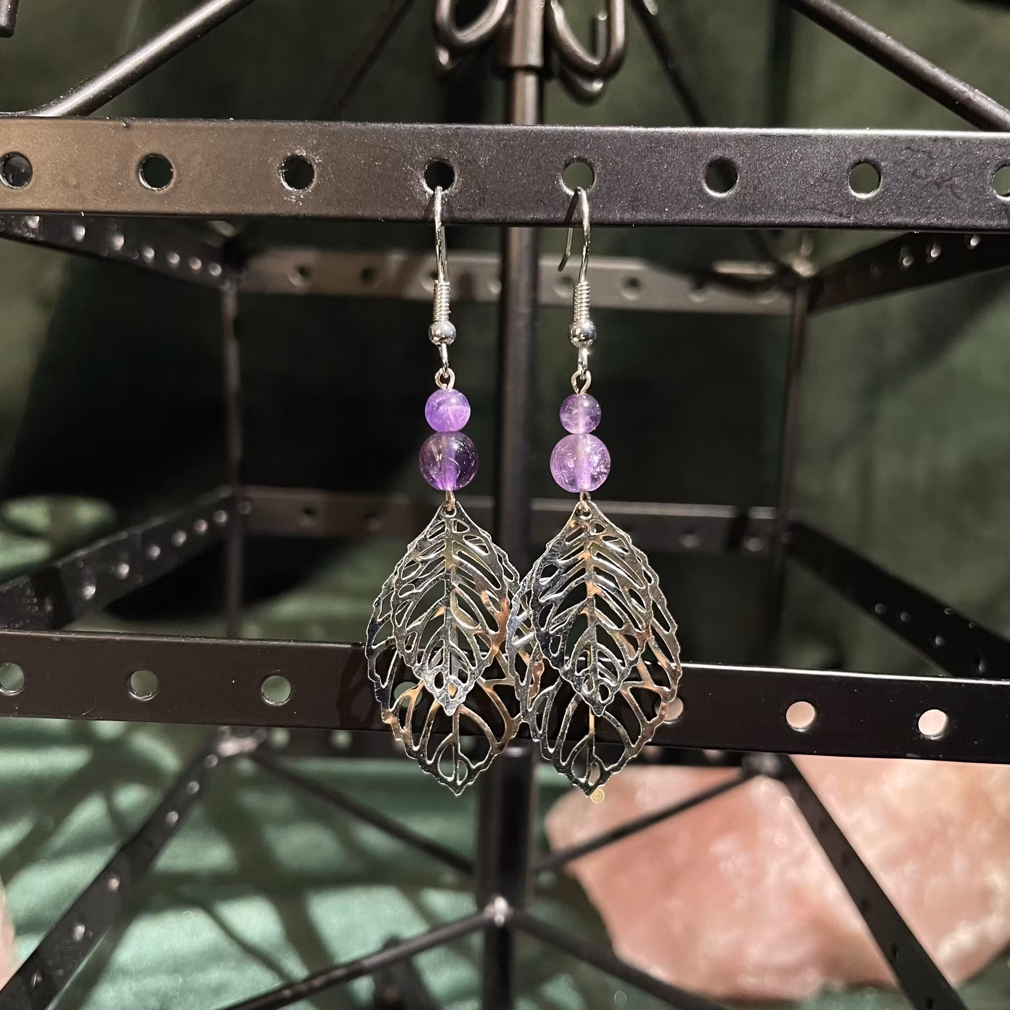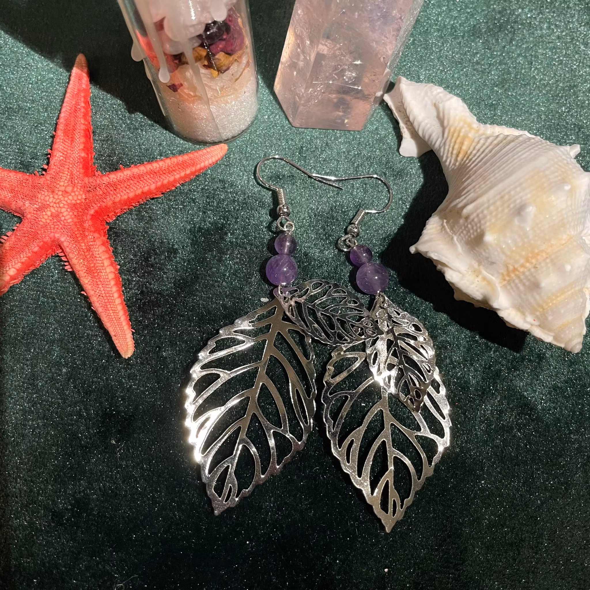 Örhängen - Ametist - Rund - Silver Blad Charms