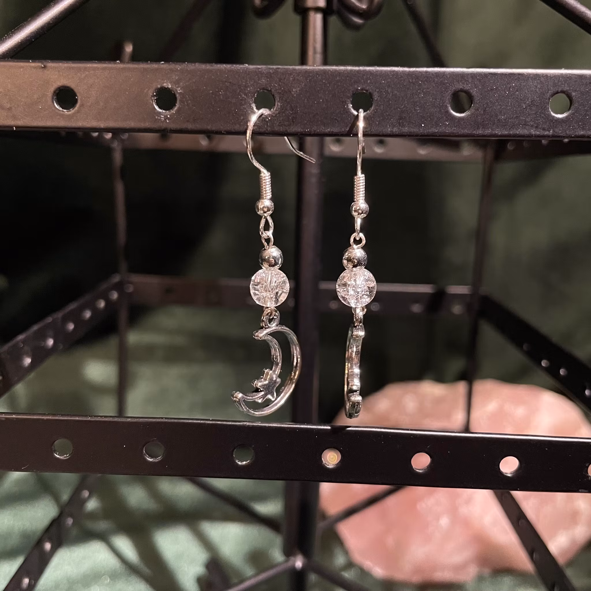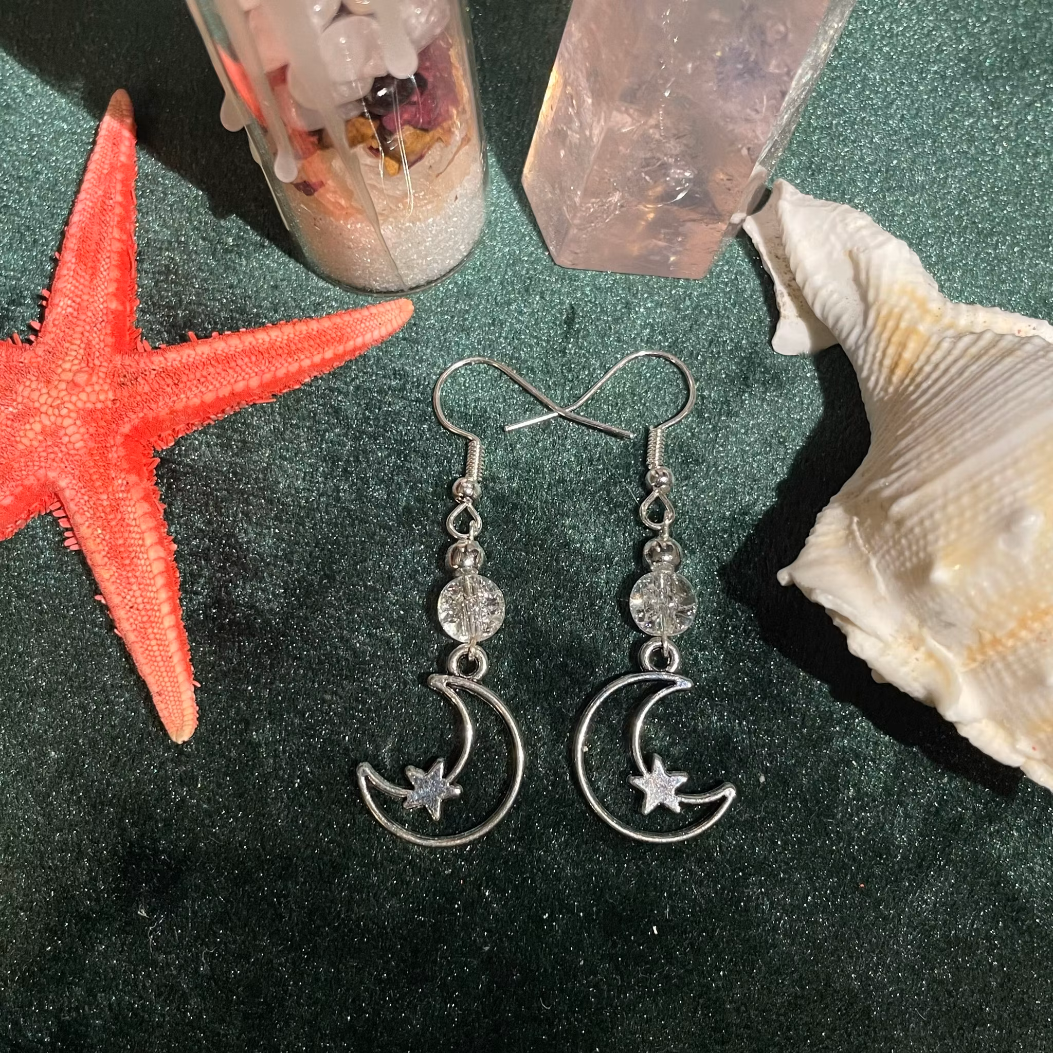 Örhängen - bergkristall- Rund - Silver Måne Charm