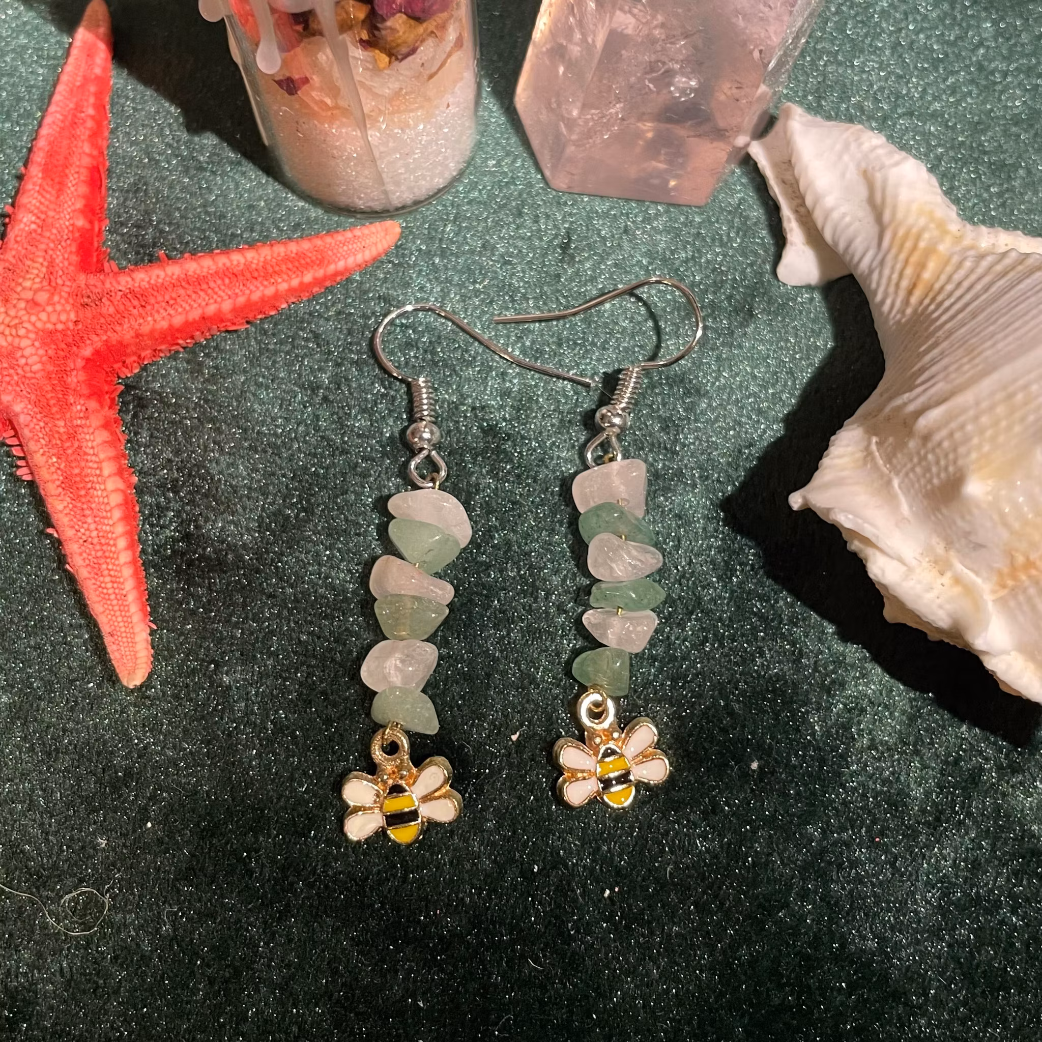 Örhängen - Rosenkvarts - Grön Aventurin - Chips - Bi Charm