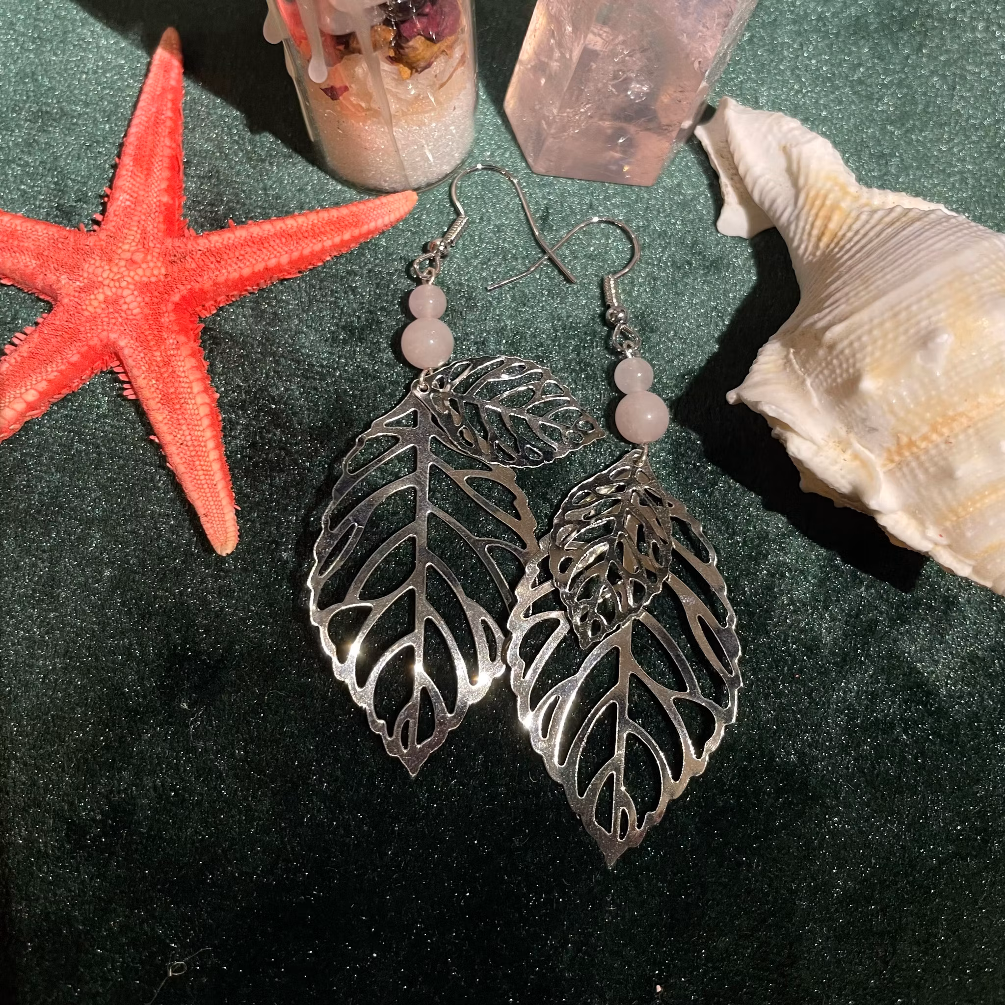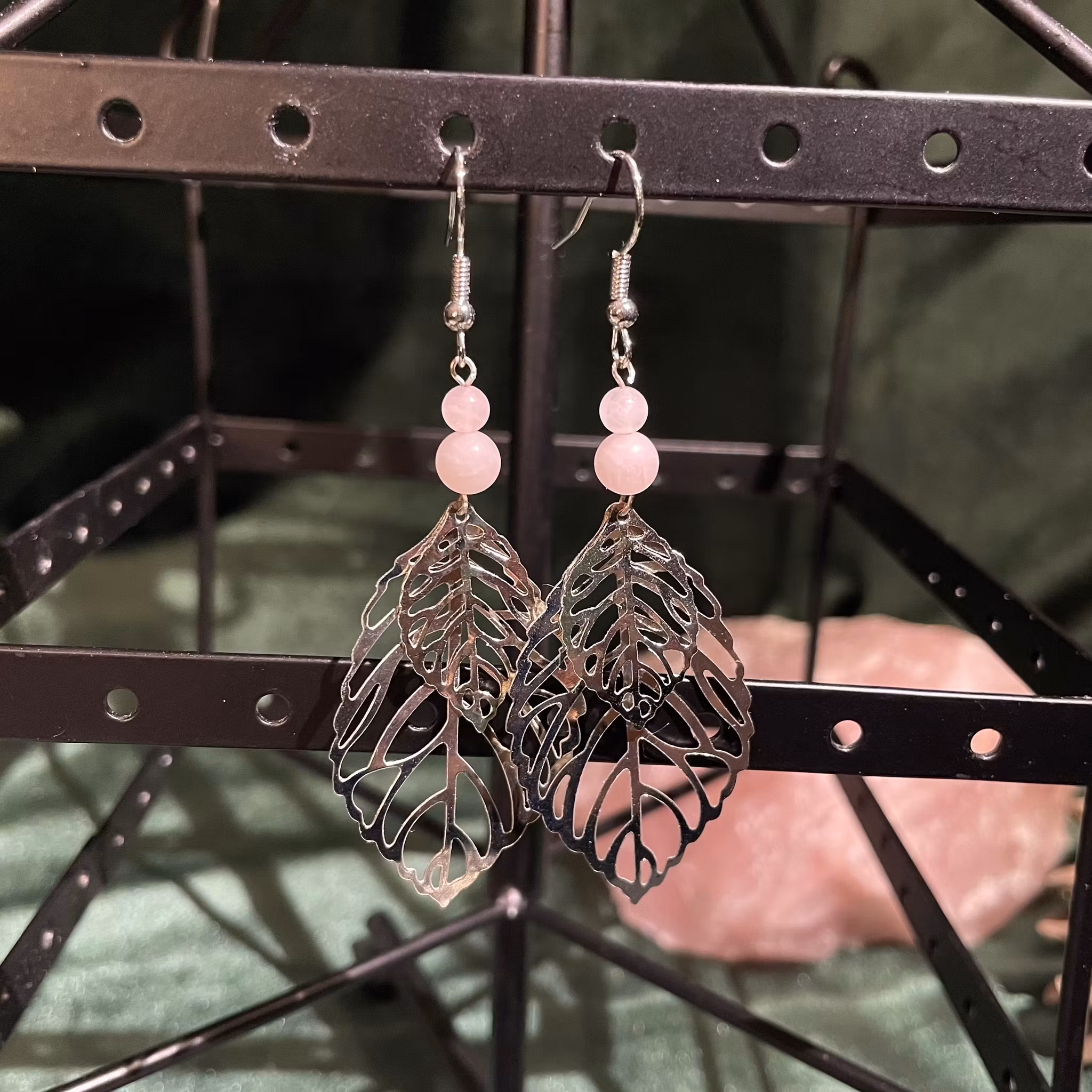 Örhängen - Rosenkvarts - Rund - Silver Blad Charms
