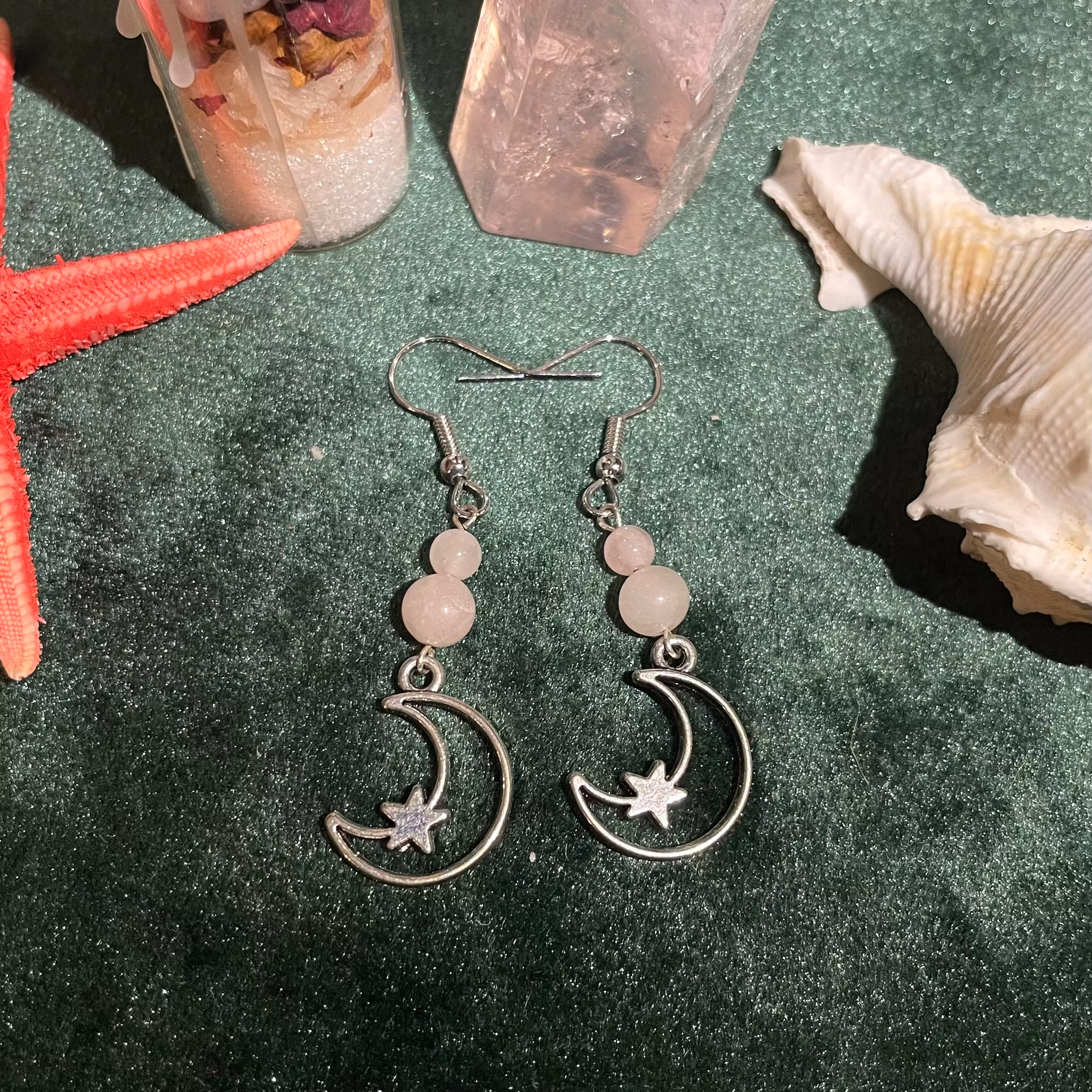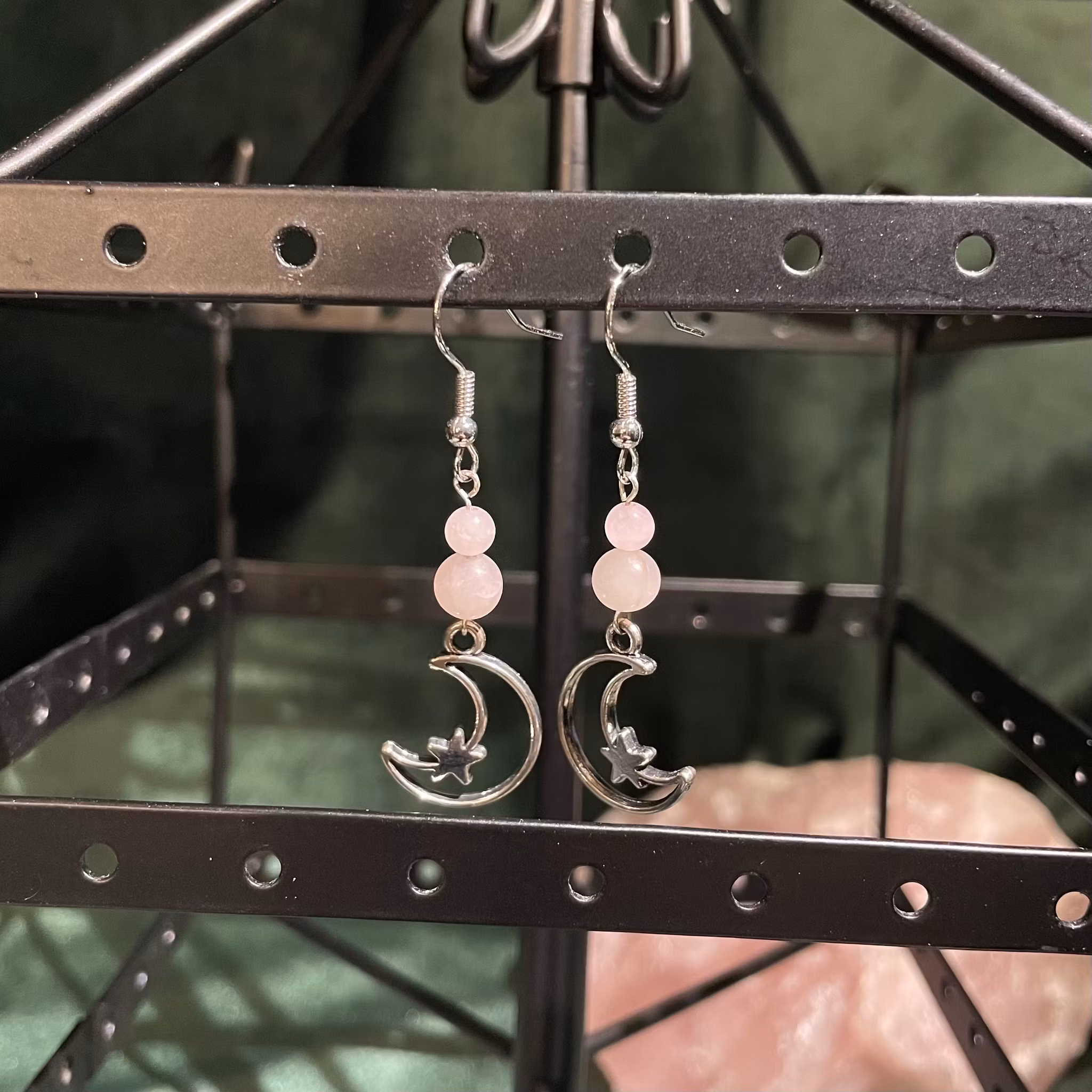 Örhängen - Rosenkvarts - Rund - Silver Måne Charm