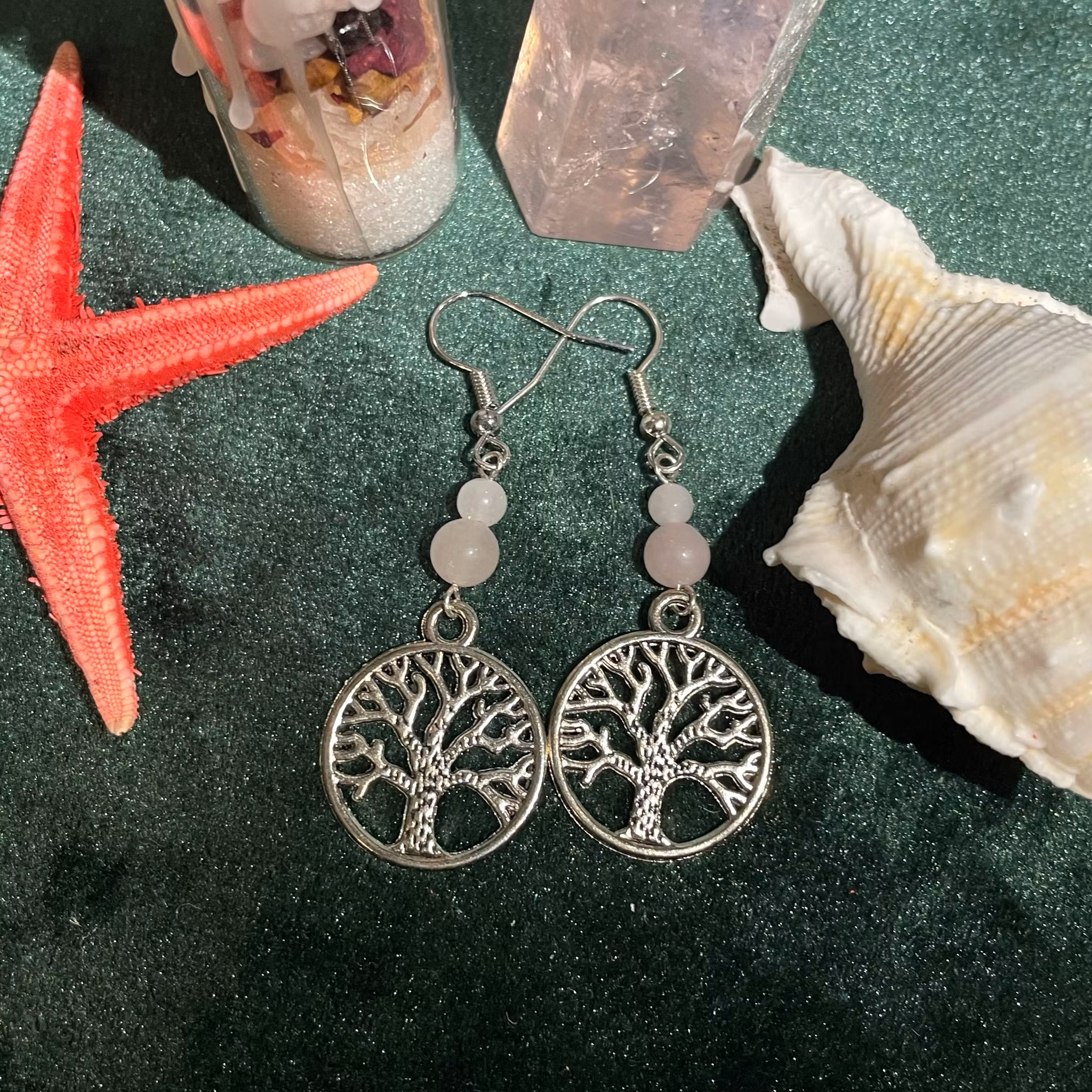 Örhängen - Rosenkvarts - Rund - Silver Träd Charm