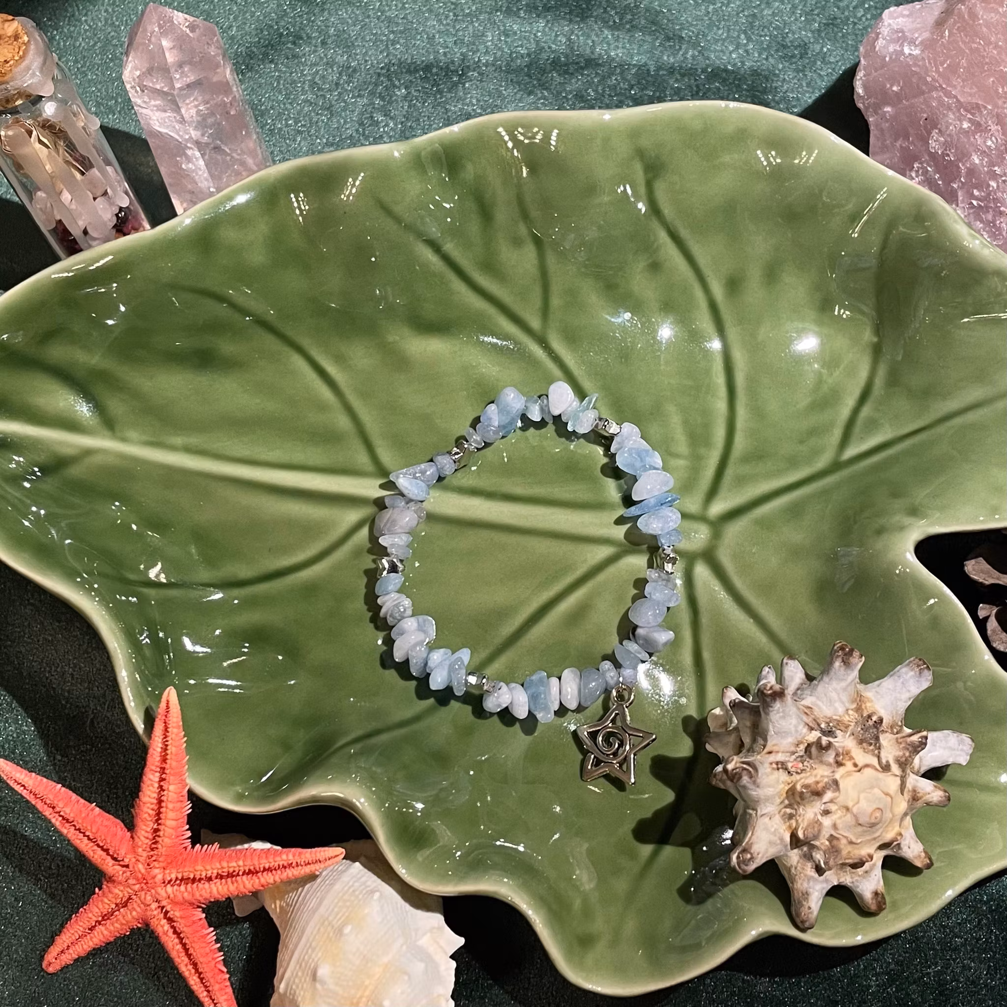 Armband - Akvamarin - Chips - Silver Stjärnor - Stjärna Charm